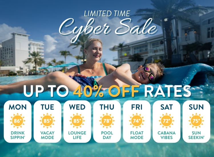 Book now with our Cyber Sale and save up to 40% when you stay two nights or more! Enjoy endless sunshine and book your winter getaway today!