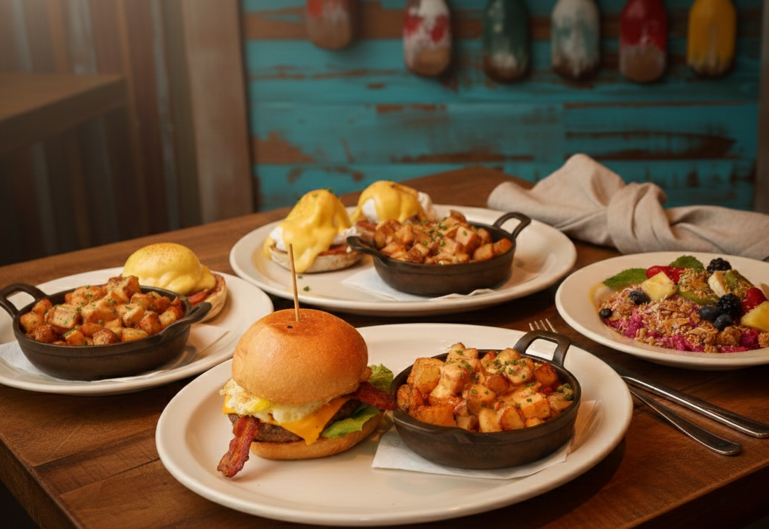 Join us daily from 7:00 a.m. – 11:30 a.m. for a delicious morning pick-me-up! From breakfast classics like eggs benedict, pancakes, and oatmeal to fun staples like a blended dragon fruit paradise bowl and a hangover burger, we’ve got you covered!