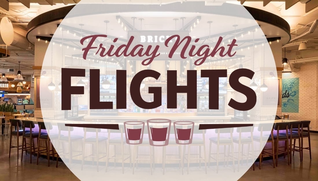 Join us every Friday from 6:00 p.m. – 9:00 p.m. in Harbor Yards at Brick & Daisy for Friday Night Flights, a rotating tasting experience featuring 3–5 curated spirits in each flight. Guests who purchase a beverage flight receive 20% off food the night of the event. No two Fridays are the same.