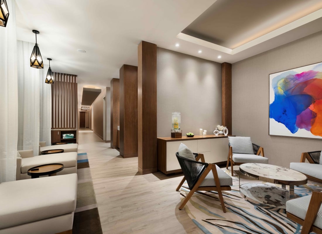 - Enjoy a glass of champagne or wine along with light, healthy snacks in the Relaxation Lounge before your service(s).